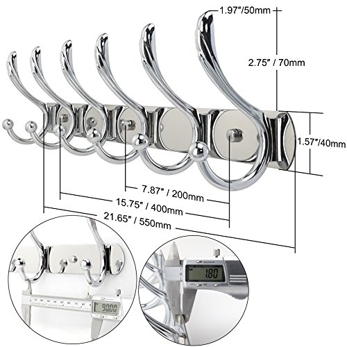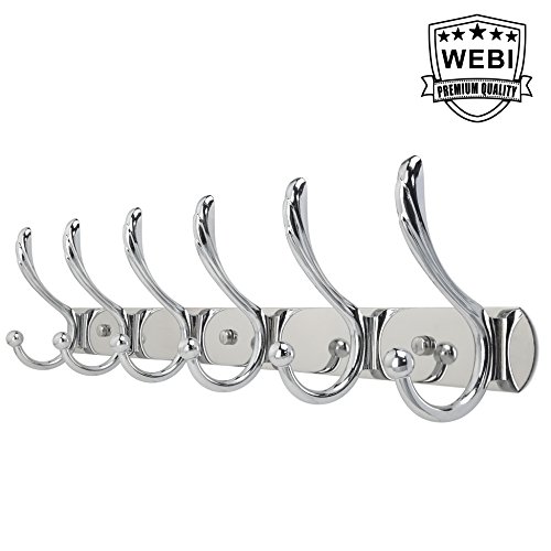Coat Hooks WEBI Classic Robe Bath Hat Kitchen Towel Utensil Utility Hook Garment Rack Hanger Rail Holder Wall Mounted,Chrome Finish, Aluminium Alloy