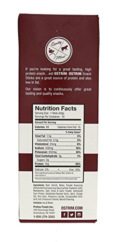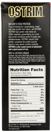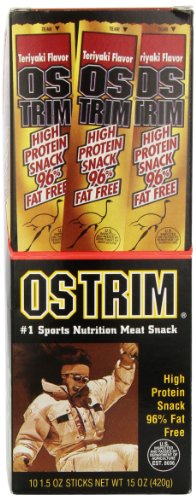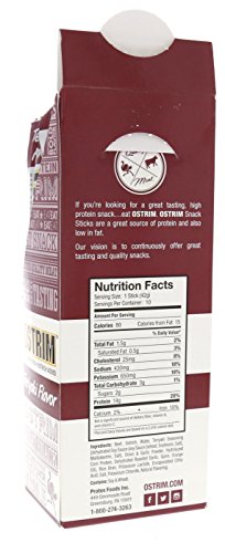 ReleaseDate : 2008-07-17 Studio : Ostrim Publisher : Ostrim Binding : Grocery Product Description Ostrim beef ostrich snack is a sports nutrition, low fat, high-protein meat stick made from a combination of Ostrich, a highly nutritious red meat, and the leanest beef available. 0