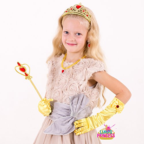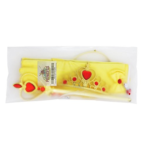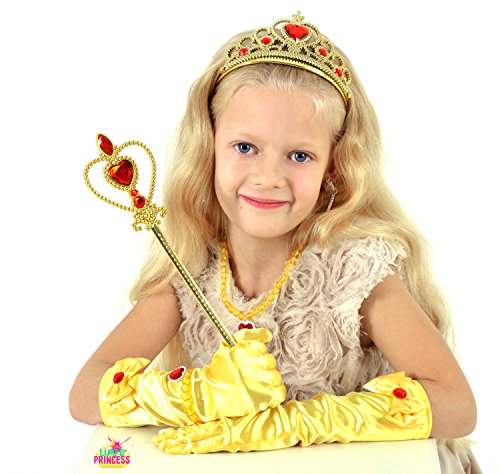 Beautifully decorated Belle ornament Princess dress gift set also includes a jewelled golden crown with the high-quality details and Cinderella gloves made of soft and delicate material.