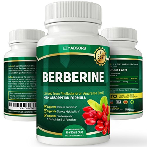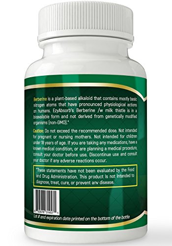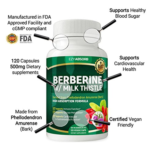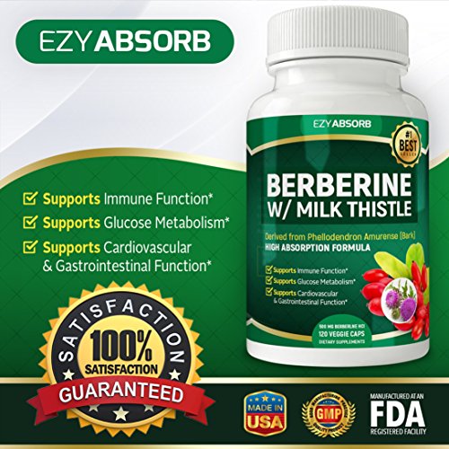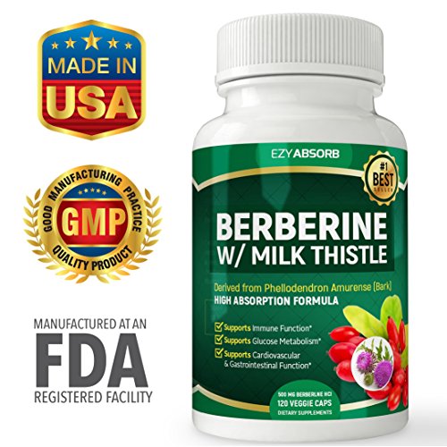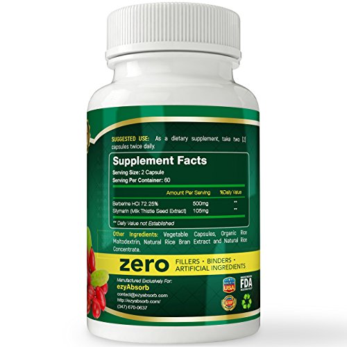 EzyAbsorb Gluten-Free Berberine 500mg /w Milk Thistle veggie capsules for Blood Sugar Support, ...