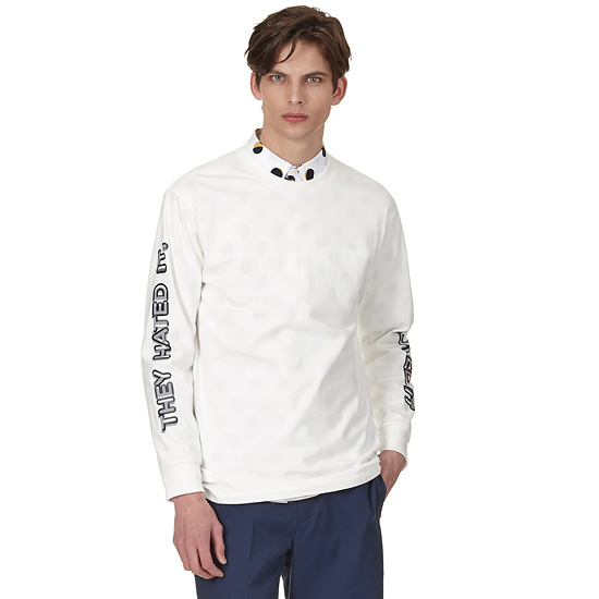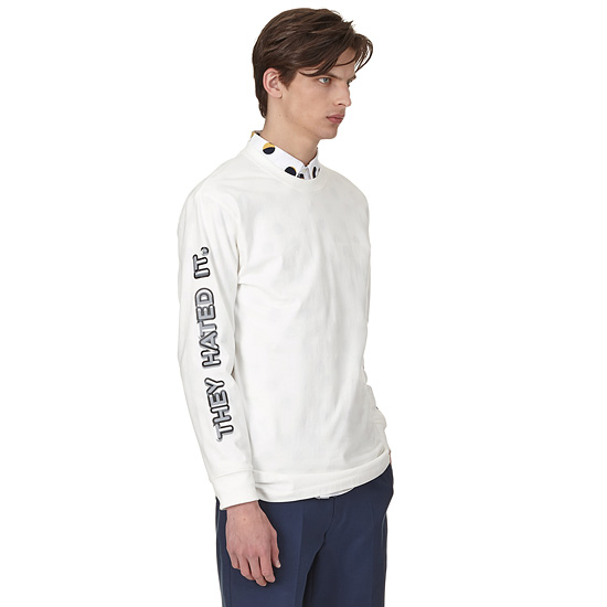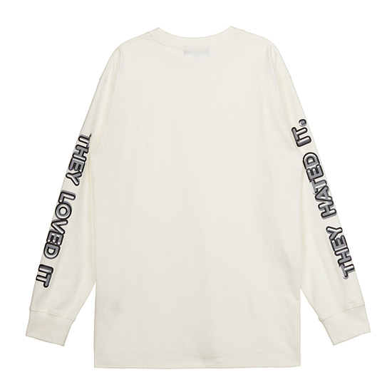 - 소매의 입체적인 레터링 프린팅이 돋보이는 캐쥬얼 티셔츠.