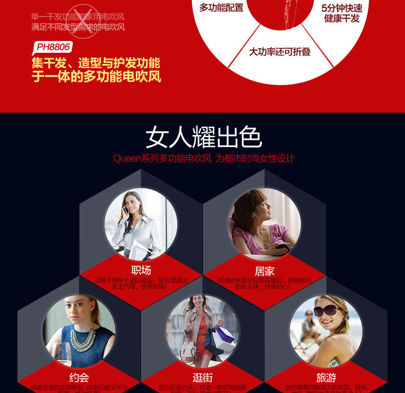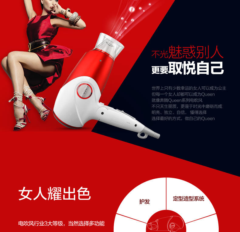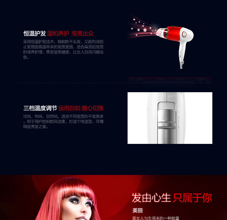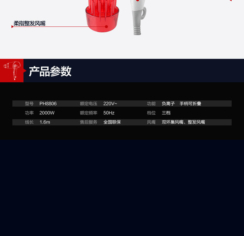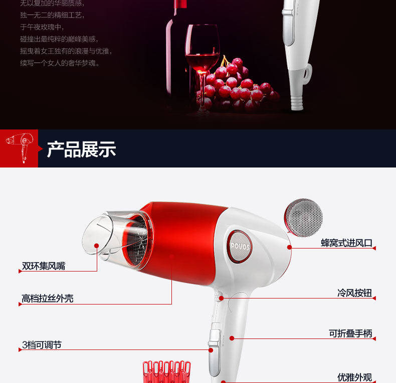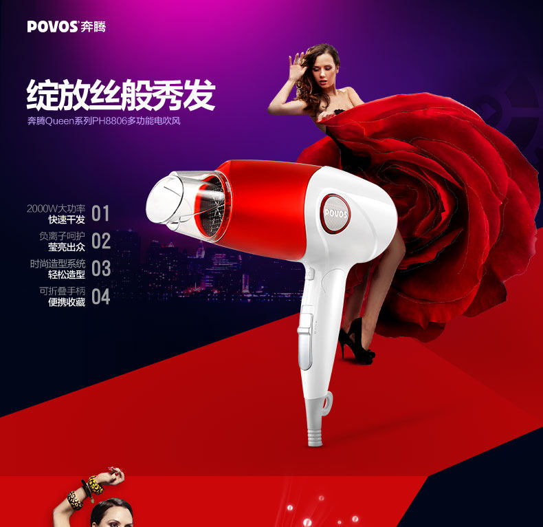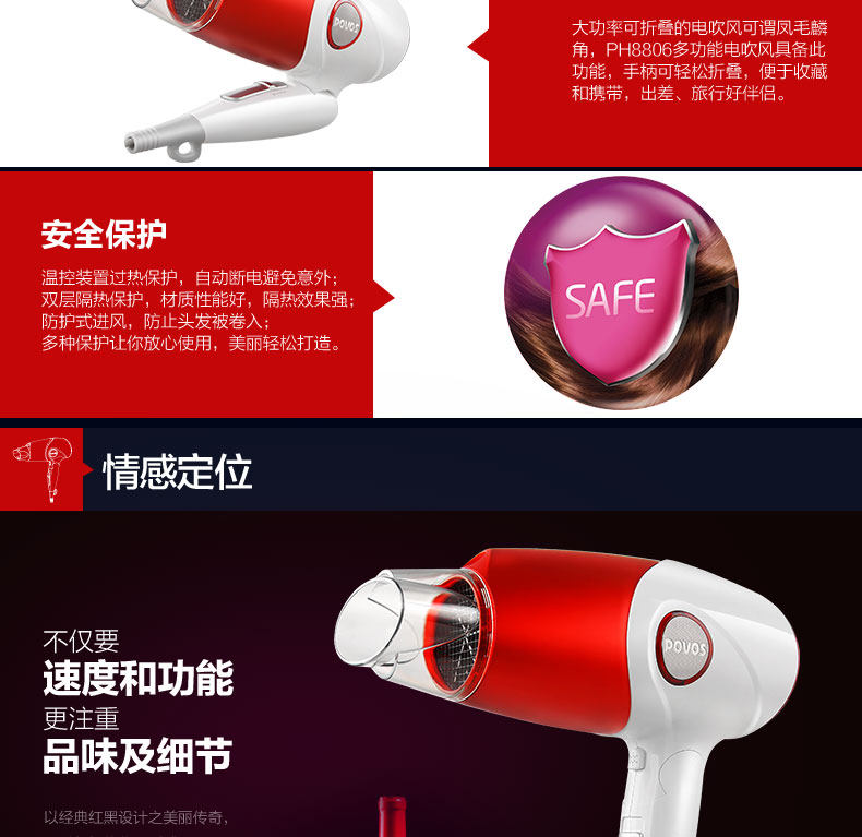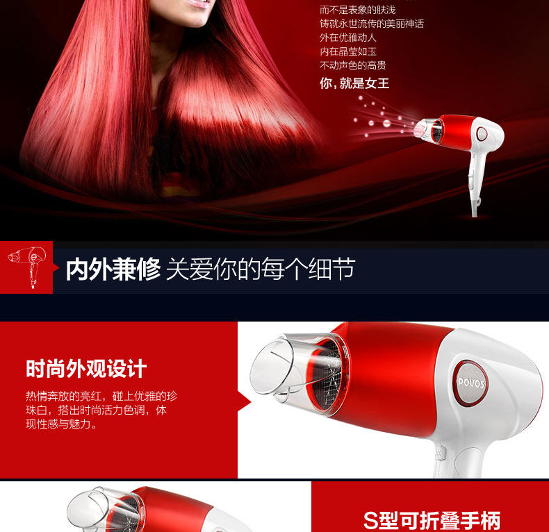 奔腾吹风机家用大功率负离子电吹风筒静音冷热风吹飞机折叠便携式