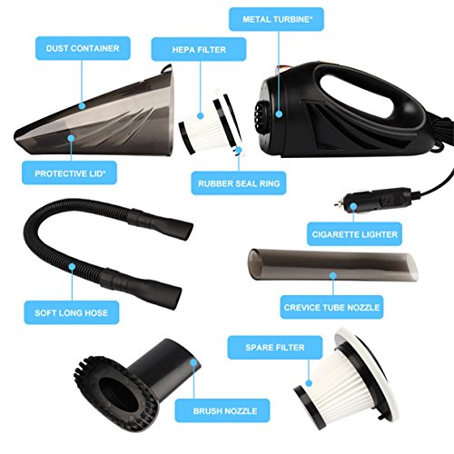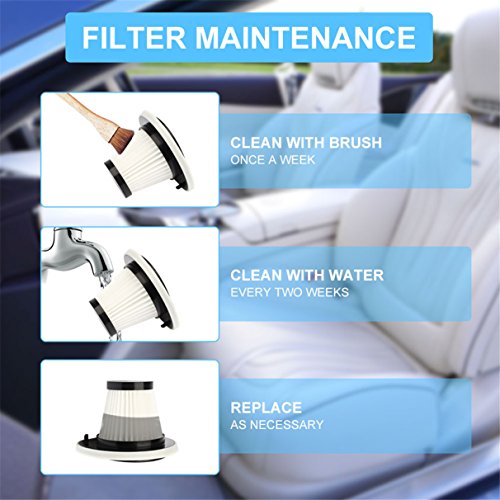 4.【Removable & Washable HEPA Filter】: We support two HEPA filter, which are detachable and easy to be cleaned. It will be more powerful if start the car first while use the car vacuum and the filter should be cleaned up every time of use.
