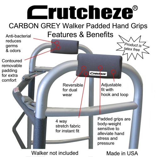 Crutcheze Carbon Grey Walker Padded Hand Grip Covers Made in USA...