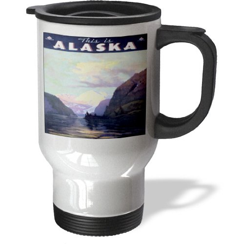 3dRose tm_172114_1 This is Alaska Scenic Mountain & Lake Landscape Stainless Steel Travel Poster Stainless Steel Travel Mug, 14 oz, White