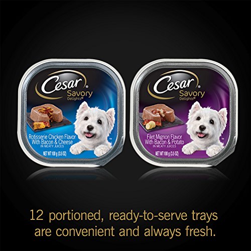 CESAR SAVORY DELIGHTS Variety Pack Rotisserie Chicken & Filet Mignon Dog Food (Two 12-Count Cases)