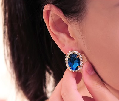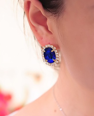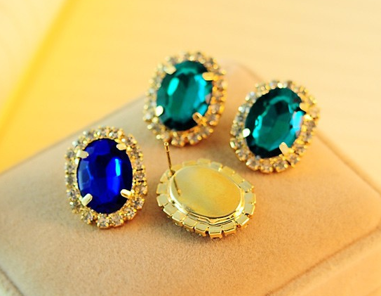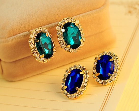 anting klasik cantik Oval safir batu zamrud kristal emas perhiasan wanita Oval emerald sapphire crystal stud earrings gold jewelry JEW SJA0846535262 GHJ qty000