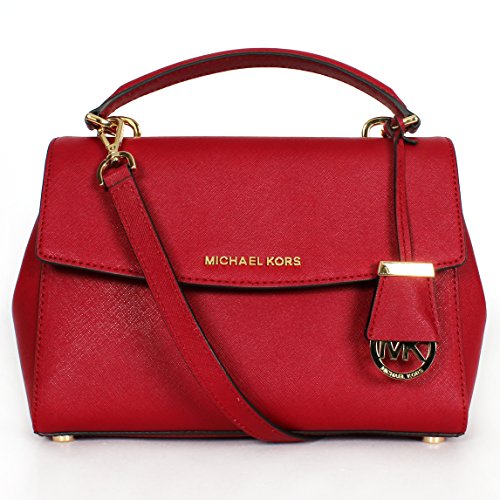 -. Brand : Michael Kors -. Department : womens -. Feature : Saffiano leather with gold-tone hardware / 9.75"L x 4"W x 7.5"H / Top handles with 4" drop; adjustable crossbody strap with 19-21" drop / Flap closure, footed bottom / Interior zip compartment, interior zip pocket, three interior slip pockets, interior cell phone pocket -. Model : 30T5GAVS2L -. ProductGroup : Shoes -. ProductTypeName : HANDBAG -. Title : MICHAEL Michael Kors Ava Small Saffiano Leather Crossbody Satchel