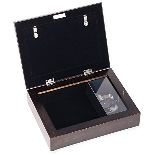 Beautiful Italian inspired design with a rich burlwood finish and silver color inlay photo frame lid - You can replace picture with 4x6 inch personal photo