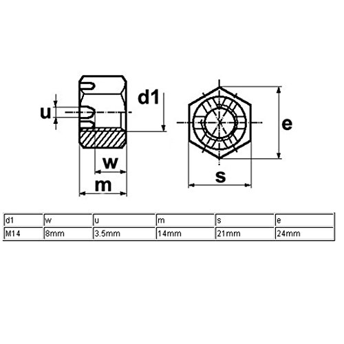 uxcell M14 x 2mm Pitch 304 Stainless Steel Hexagon Slotted Castle Nuts 5 Pcs