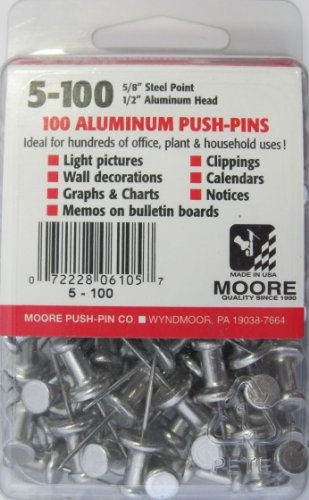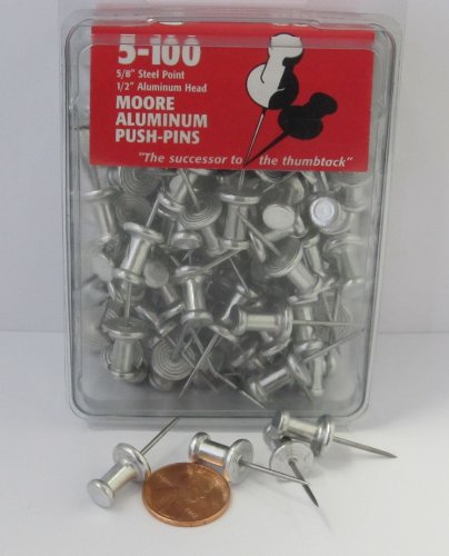Moore Push-Pin 5-100 Aluminum Push Pins, 100 per Box