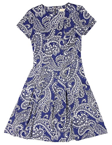 -. Feature : Solid sapphire blue, black and white color paisley / Woven fabric / A line dress / Medium weight style fabric / Fabric: 95% Polyester 5% Elastane