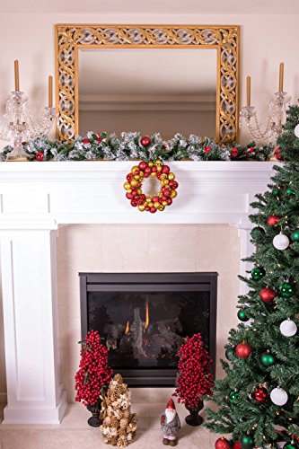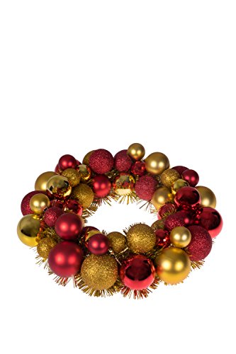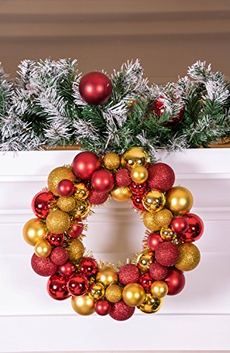 Christmas Ornament Wreath by Clever Creations | Bright Red and Gold | Festive Holiday Décor | Classic Theme | Lightweight Shatter Resistant | Indoor or Outdoor | Countless Uses | 13.5" x 13.5" x 2.75"