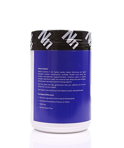 -. Binding : Health and Beauty -. Brand : NAKED nutrition -. EAN : 0712395691601 -. Feature : Only One Ingredient: 100% Pure Micronized Creatine Monohydrate. / Highest Quality: Naked Creatine is the highest grade creatine monohydrate supplement available. / Fast Dissolving: Unlike other brands, Naked Creatine dissolves quickly in water or your juice of choice. / Rapid Absorption: Pure creatine monohydrate allows for fast absorption which enhances gains, strength, and increases training capacity. / No Additives: Made from pure monohydrate creatine with no artificial sweeteners, flavors or colors. -. IsAdultProduct : 0 -. Label : NAKED nutrition -. Manufacturer : NAKED nutrition -. ProductGroup : Health and Beauty -. ProductTypeName : HEALTH_PERSONAL_CARE -. Publisher : NAKED nutrition -. Studio : NAKED nutrition -. Title : NAKED CREATINE - Pure Creatine Monohydrate - 2.2lb Bulk, Non-GMO, Gluten Free, Soy Free. Aid Muscle Growth & Strength Gains, No Artificial Ingredients -- 5g per Serving - 200 Servings -. UPC : 712395691601