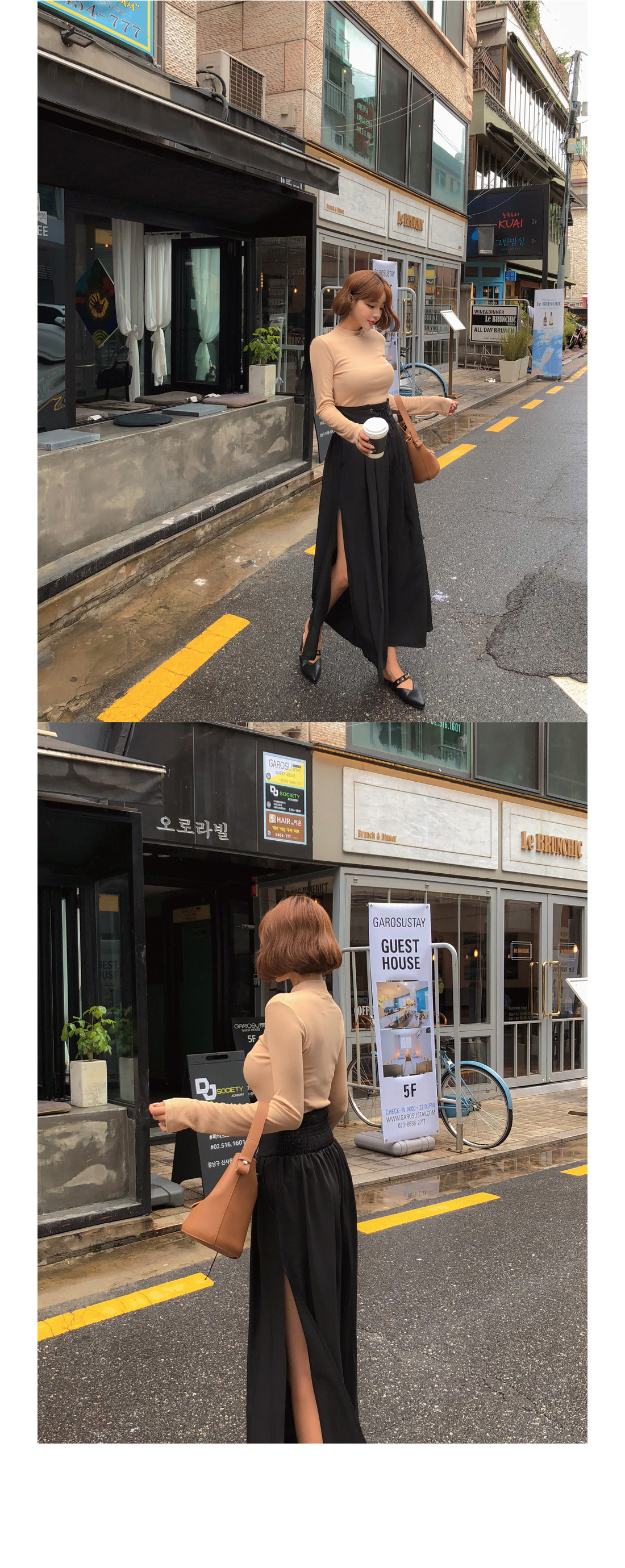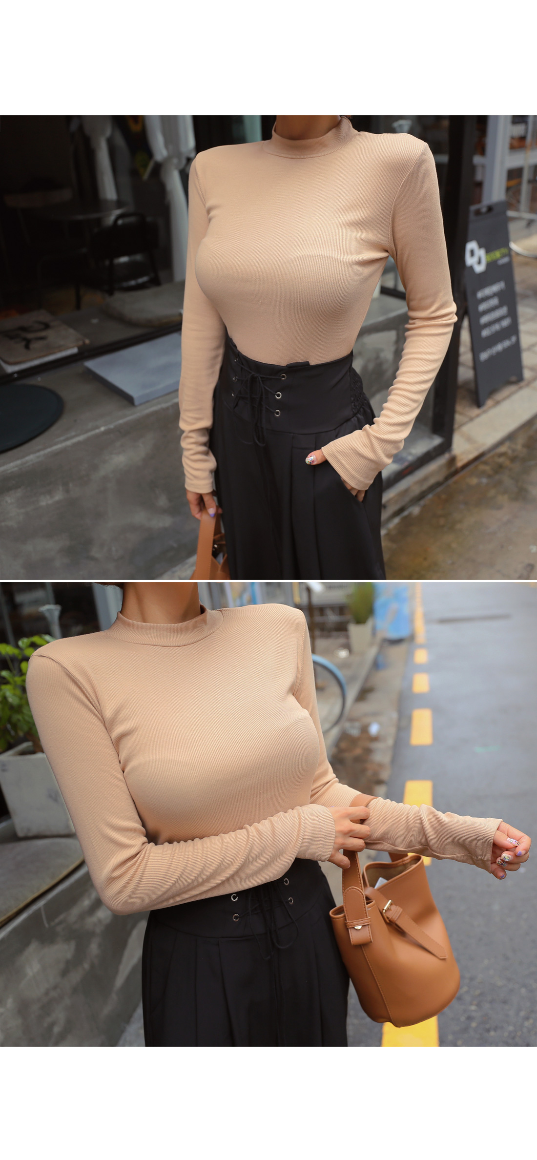 MD COMMENT 데일리룩에 두루두루 즐기기 좋은 티셔츠를 소개할게요.목 위로 살짝 올라오는 반하이넥 디자인에긴팔 소매로 제작되었는데요.손등을 살짝 덮어주는 롱-한 소매 기장감으로은근 여리여리한 실루엣을 연출해주었구요.전체적으로 신축성이 좋은 레이온 혼방 소재로바디를 감싸주어 슬림한 라인을 연출하실 수 있으며기분 좋은 착용감 또한 느껴볼 수 있답니다.군더더기없이 깔끔한 디자인에 베이직한 컬러감으로다양한 하의 아이템과 두루두루 매치하기 좋아데일리 티셔츠 아이템으로 추천할게요!COLOR/SIZE 베이지,브라운,퍼플,아이보리,카키,와인,블랙FREEMODEL FITTING 베이지/FREE