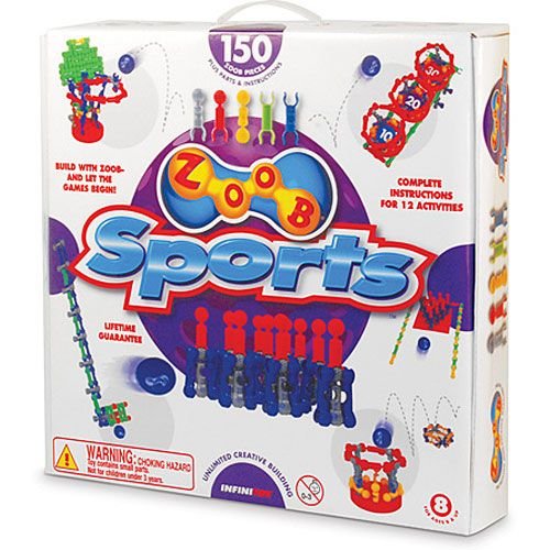 -. Feature : Prepare for the ZOOB-O-Lympics / Build games of skill like bowling, skee-ball, basketball and more / Click and pop together to form joints that rotate, limbs that extend, axles that spin and lots more / Includes 150 ZOOB pieces, 3 play pads, 2 hi-bounce balls and score pads / Recommended for children 8 years of age and older.