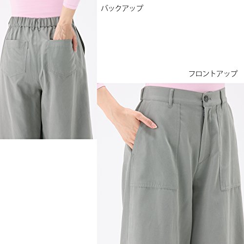 -. Feature : [カラー]: アースグリーン, グレー / [サイズ]: M, L, LL, 3L / [ヒップ]: 102cm, 107cm, 115cm, 121cm / [股下]: 48cm, 48cm, 48cm, 48cm / [前股上]: 29cm, 29cm, 30cm, 30cm / [裾幅]: 34cm, 35cm, 37cm, 39cm