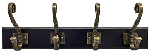 Headbourne 8034E 18" Black Hook Rail / Coat Rack with 4 Antique Bronze Double Hooks