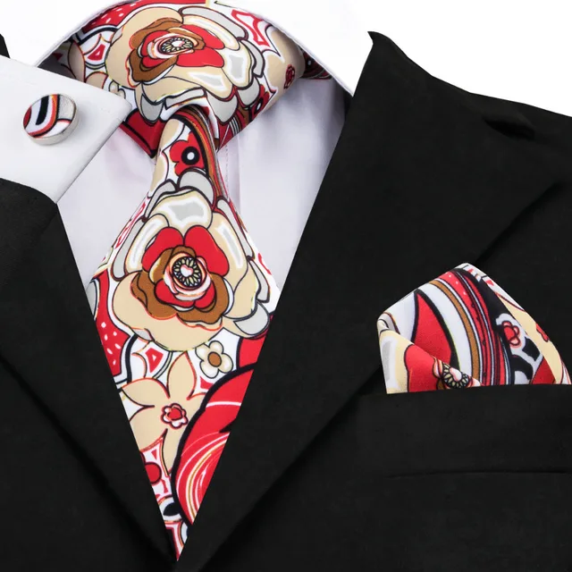 상품 내용 SN-1236 뜨거운 새로운 레드 웨딩 넥타이 손수건 커프스 세트 100% 수제 실크 Corbatas 넥타이 남성 결혼식 신랑 파티
