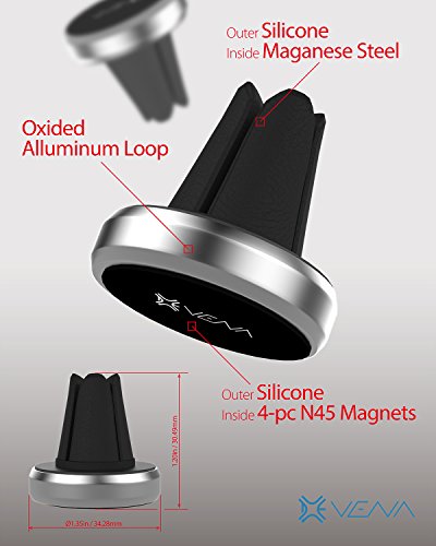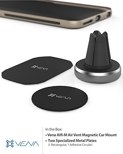 Car Mount, Vena AIR-M Universal Air Vent [Magnetic | 2 Plates] Aluminum Car Mount Holder for iPhone 7 Plus 6S 6 5 SE, Galaxy S8 Plus S7 S6 Edge , Moto G5 Plus, Google Pixel, LG G6 Smartphone