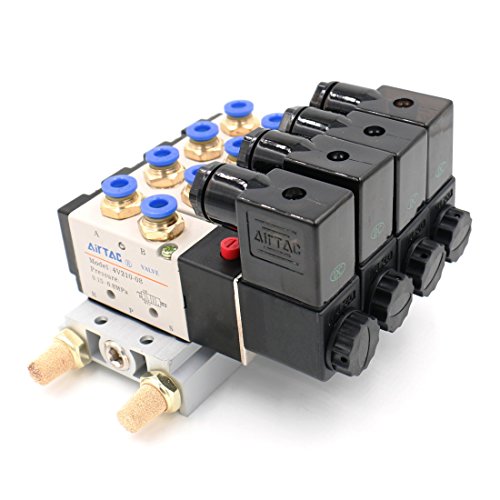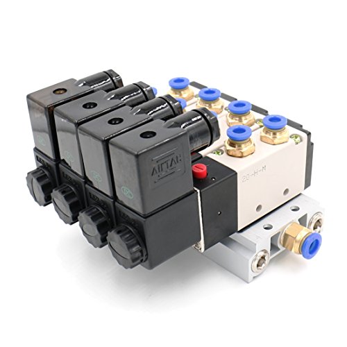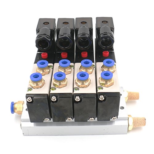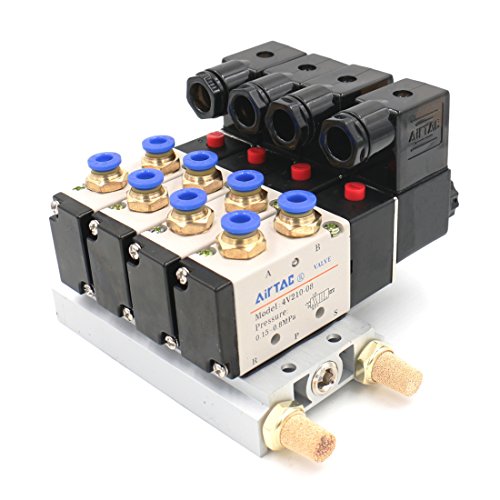 Baomain 4V210-08 DC 12V Single Head 2 Position 5 Way 4 Pneumatic Solenoid Valve w Base