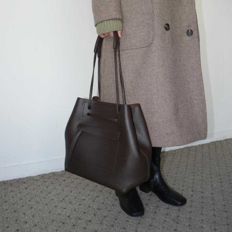 차분한 컬러감으로 다양한 룩과 잘 어우러지며 여유 있는 크기감으로 다양한 소지품 수납에 용이합니다. 프런트의 포켓 디테일로 포인트를 주었으며 스트랩을 조절하여 숄더백 혹은 토트백으로 연출이 가능합니다.