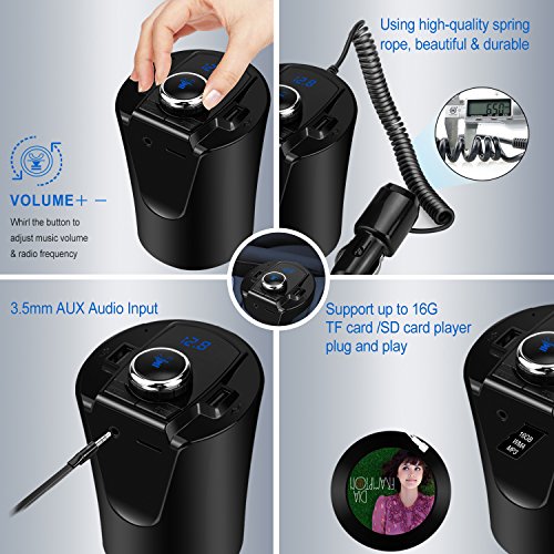 - HD LCD DISPLAY: When the car starts, song names & incoming phone number can be clearly displayed on the BIG LCD screen of LUTU wireless FM transmitter.