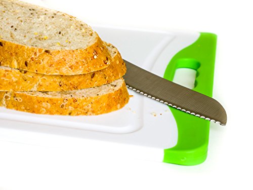 - A convenient and large cutting board measuring 18" x 12" with 1/3" thickness.