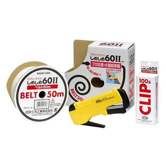 | セット内容 | ボディ×1、ベルト(巾6mm×50m巻)×1、クリップ×100、キット箱、取扱説明書 |