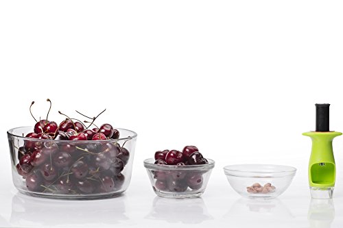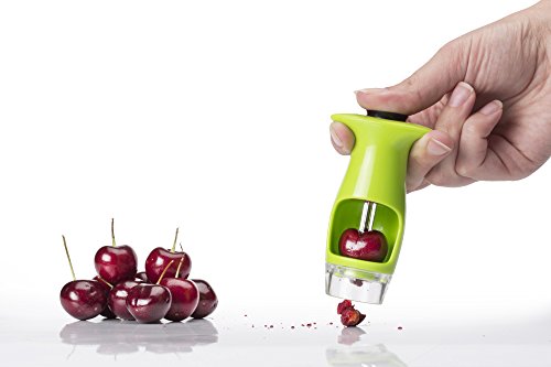 - Neatly remove the pit from your cherries in seconds with this nouvelle innovative kitchen gadget. It works perfectly for both large and small cherries as well as olives leaving the fleshy fruit intact and ready to eat. An absolute hit in the kitchen as you rapidly pit many cherries in no time. Make delicious recipes with your pitted cherries. Check the bonus eBook for some nice ideas.