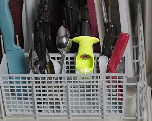 - Designed to be safe with very minimal risk of self-injury, lightweight and easy to use and easy to clean. The piston requires only little amount of pressure and smooth spring action results in bruise-free pitted cherries every single time. Also stay stain and splatter free with a shield that protects you from splashing juices, just direct it downward toward your bowl, plate or sink.
