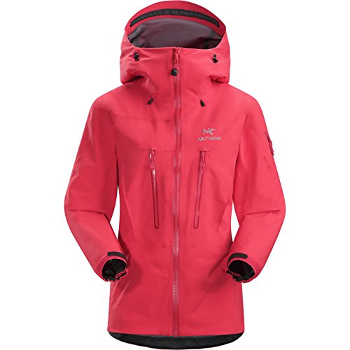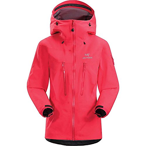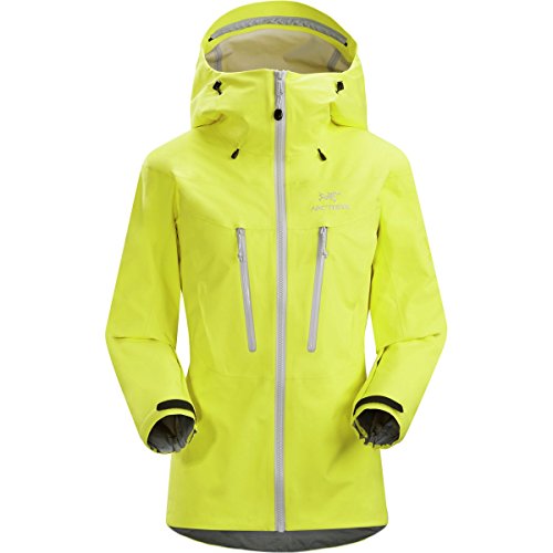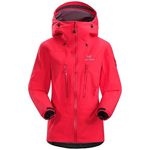 FEATURES of the Arcteryx Women's Alpha SV Jacket Made with hard wearing N80p-X GORE-TEX? face fabric engineered to shed water, snow and resist abrasion while staying soft and quiet compared to other shell materials Athletic e3D patterning provides room for three layers while facilitating movement Helmet-compatible StormHood rotates without blocking vision and is designed to provide the ultimate protection in cold or wet weather WaterTight pit zippers permit rapid ventilation Two large bellowed chest pockets, perfectly placed to fit above your pack or harness, two internal laminated pockets and one sleeve pocket Hem drawcord and HemLock removable inserts prevent jacket from slipping out from underneath harness. Insert can be removed when not needed Micro-seam allowance (1.6 mm) reduces bulk and weight Fully seam-sealed for waterproofness One-hand adjustable drawcords make your life easier Articulated patterning and no-lift gusseted underarms for unrestricted mobility Laminated die-cut Velcro? cuff adjusters with elastic Corded zipper-pulls reduce noise and are easy to grabFeature
