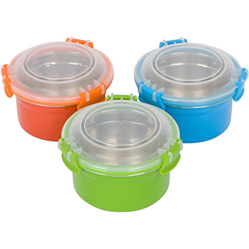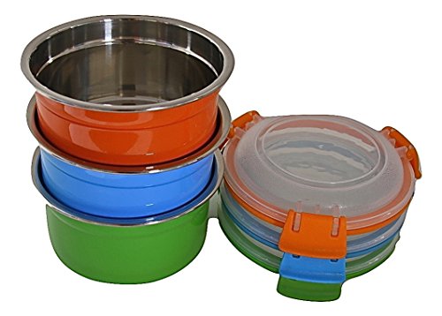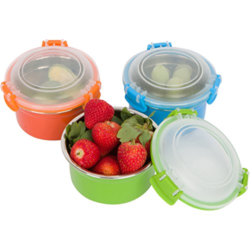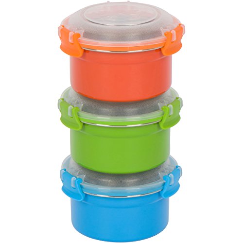 Steelware Snap Seal Leak-proof Stainless Steel Lunch Box Containers and Food Storage Snack Containers for Kids and Adults (Set of 3 - 12 oz. each) (Blue/Green/Orange)