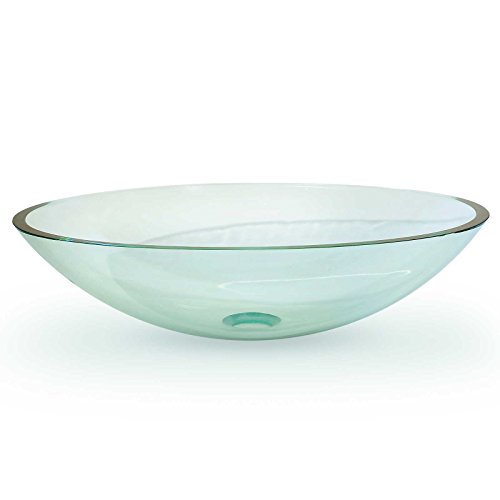 Tempered Glass Vessel Bathroom Vanity Sink Oval Bowl, Clear Color