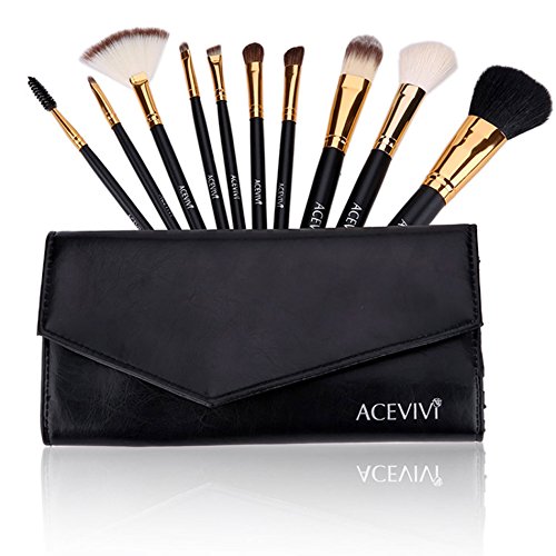 ACEVIVI 10 Pieces Makeup Brushes Set with Powder Blusher Cosmestic Kabuki Brushes with Synthetic Leather Case Black