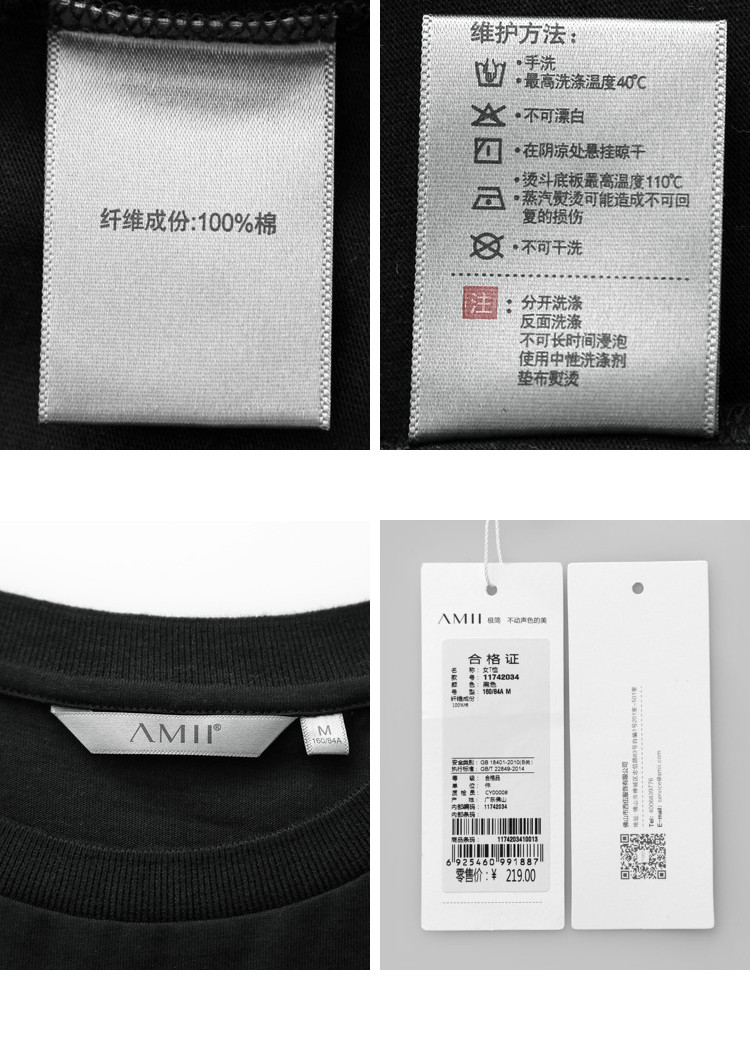 | 洗涤标准: | 不可漂白不可干洗悬挂晾干40℃以下手洗110℃以下垫布熨烫不可浸泡 |