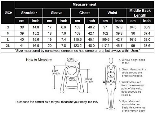 US Size M(8-10)---Shoulder---39cm/15.2inch;Sleeve---18cm/7.0inch;Chest---108cm/42.1inch;Waist---102cm/39.8inch;Length---96cm/37.4inch