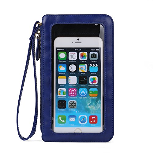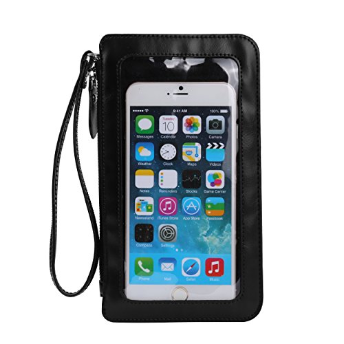 The transparent window is accessible to use your smart phone even in the pouch, allows text, email, take selfies and answer the phone without take out your phone | 3 layer interior compartments, can hold your phone, credit card, ID card, keys, cosmetic, cash, other small necessities