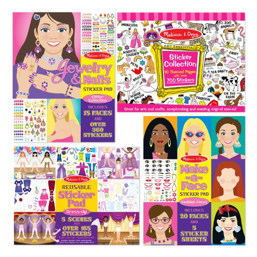 Melissa & Doug Sticker Pads Set: Jewelry and Nails, Dress-Up, Make-a-Face, Favorite Themes - 1225+ Stickers