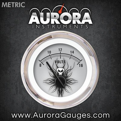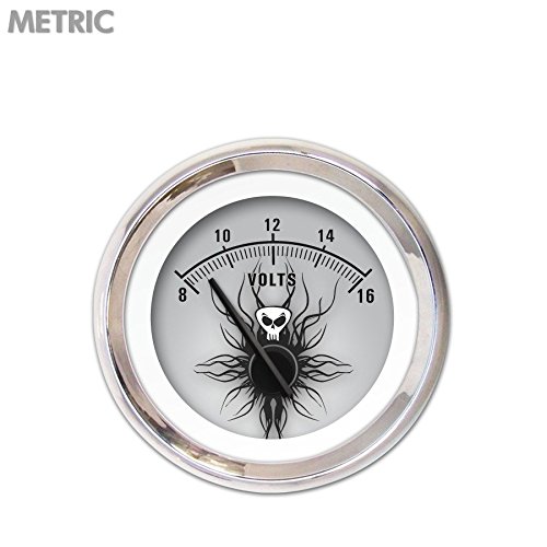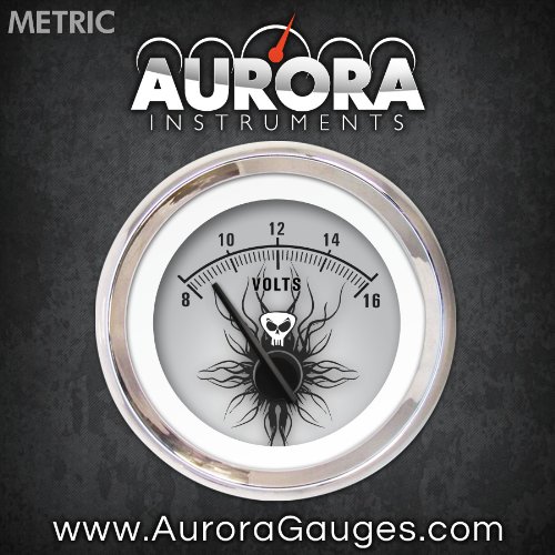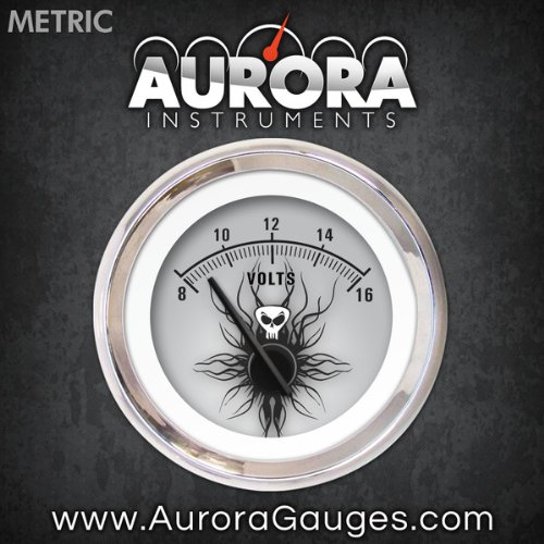 Studio : Aurora Instruments Publisher : Aurora Instruments Binding : Automotive Product Description Volt Gauge - Metric Skull Series, Black Modern Needles, Chrome Trim Rings - Style Kit Installed. Aurora Instruments volt gauges offer precise stepper motor control and needle accuracy comparable to volt gauges 3 times the price. Advanced LED illumination allows for precise, even lighting levels on the gauge face while reducing glare. All Aurora Instruments volt gauges include interchangeable trim rings, needles, and gauge faces - allowing you to change the look of your volt gauges before or after installation. Includes built-in sensor and backed by a Limited Lifetime Warranty. Aurora Instruments gauges offers the worlds largest selection of gauges and instrumentation for your ride, and are the world's only gauges offering interchangeable gauge faces, trim rings, and needles. Choose from thousands of designs and options, or custom create your own online. 0