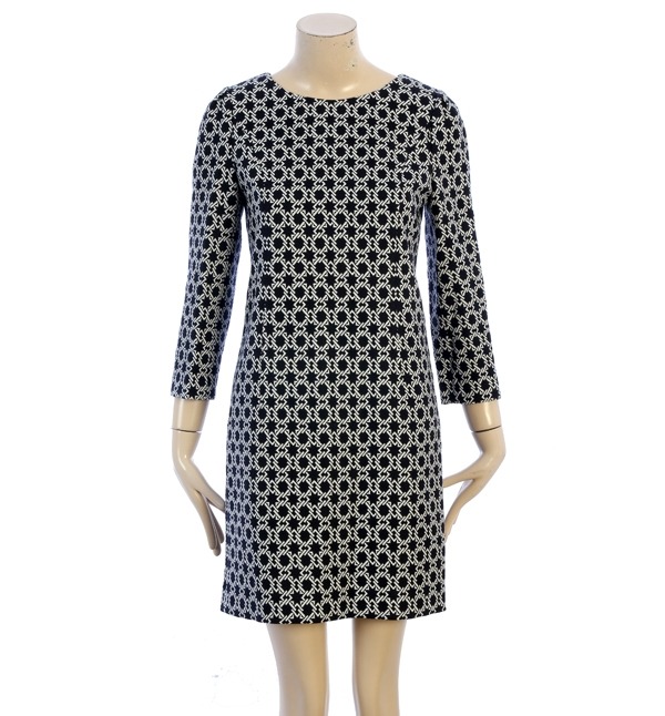 SATIN, 독특한 패턴이 전체적으로 들어가있어 세련스러운 스타일 감각을 연출하는 원피스입니다