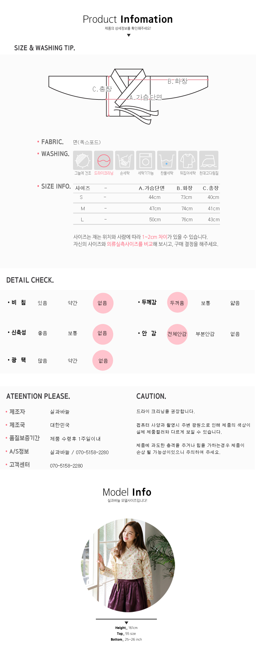 사이즈 및 원단재질과 실제 색상은 상세페이지 맨밑에서 확인해주세요
