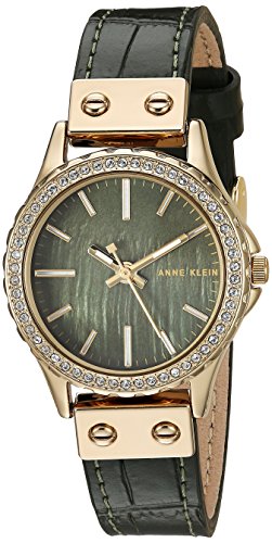 Anne Klein Women's AK/3250GMGN Swarovski Crystal Accented Gold-Tone and Green Leather Strap Watch