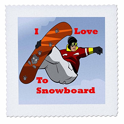 3dRose Print of I Love Snowboarding with Cartoon of Sport - Quilt Square, 14 by 14-Inch (qs_200425_5)