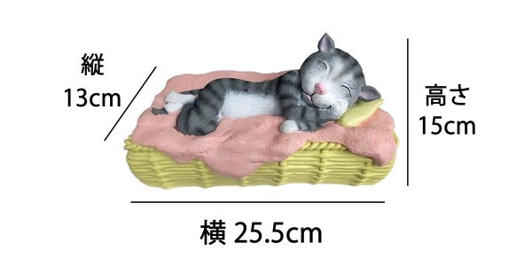 寝顔がかわいい子猫の姿をティッシュケースにしました。 製造国:中国 素材・材質:ポリレジン 商品サイズ:25.5×15×13cm 重量:1400g ※サプライヤー直送品【商品名】おもしろティッシュケース ネコ RH-417