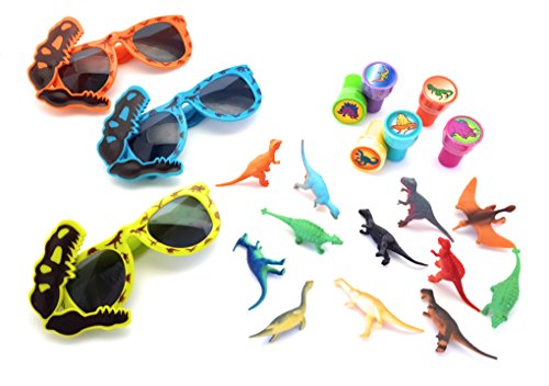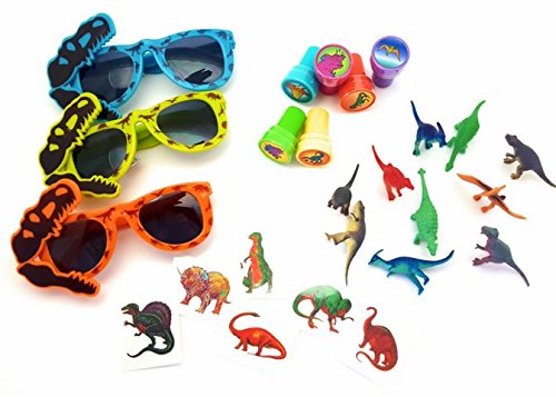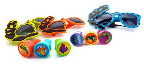 Dinosaur Party Supplies | Kids Party Favors | 12 Sunglasses, 12 Stamps, 12 Temporary Tattoos, 12 Miniature Plastic Dinosaurs