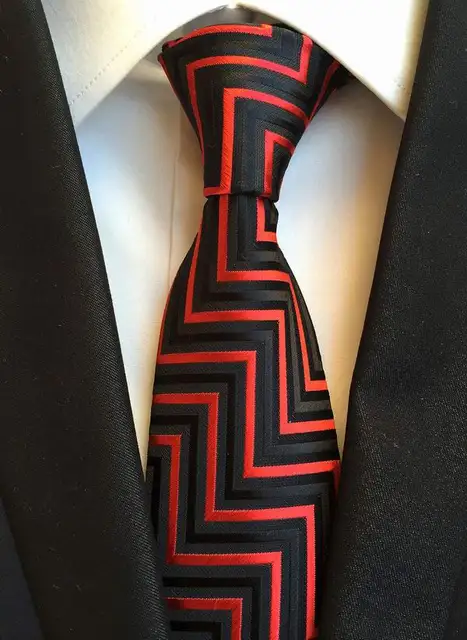 | [해외]새로운 클래식 스트라이프 레드 블랙 자카드 짠 100% 실크 남성의 넥타이 넥타이 |