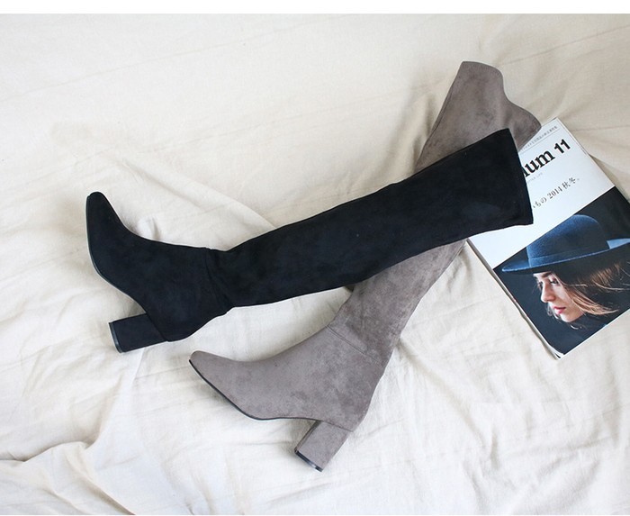商品名:ロングブーツ レディース ニーハイブーツ チャンキーヒール 太ヒール スエード調 2017 秋 冬 ファッション 靴 婦人靴