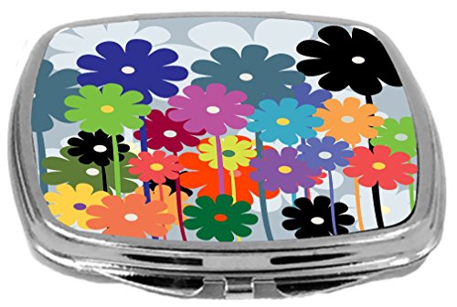 Rikki Knight Multicolor Floral Daisies Retro Art Design Compact Mirror, 17 Ounce