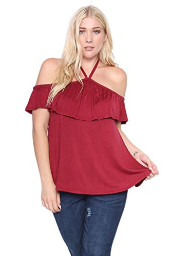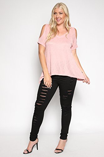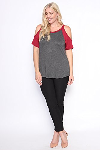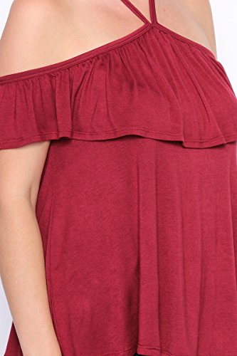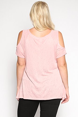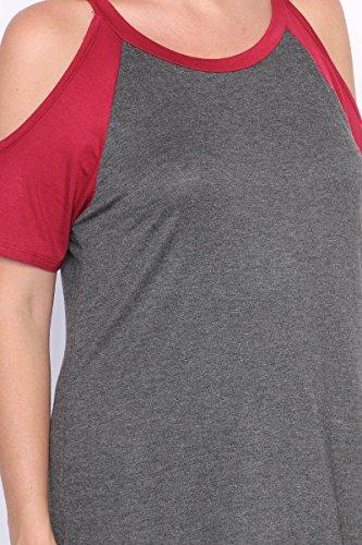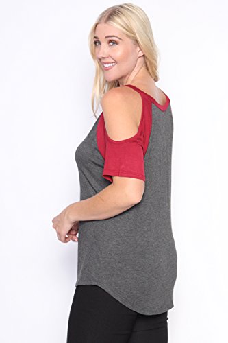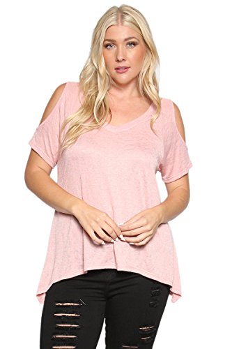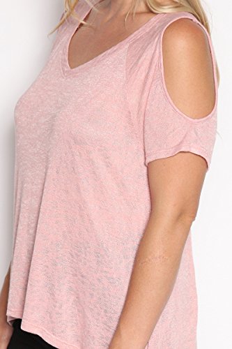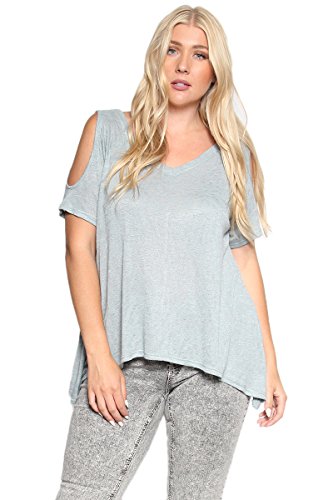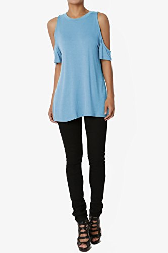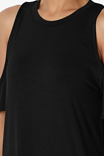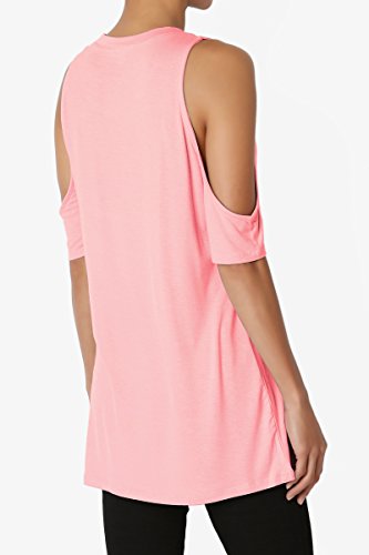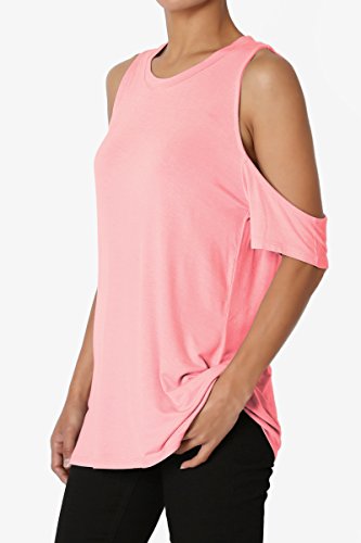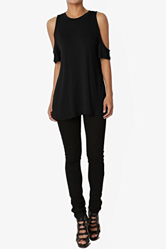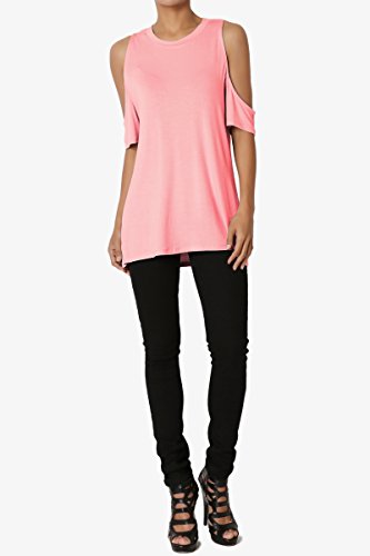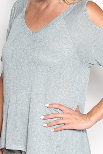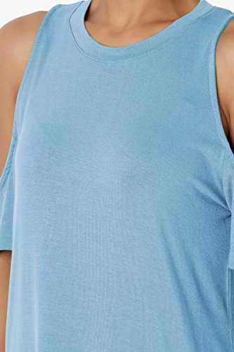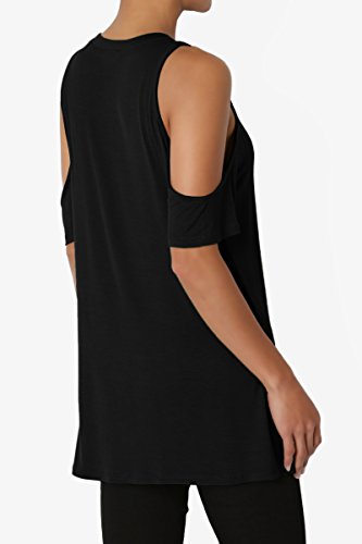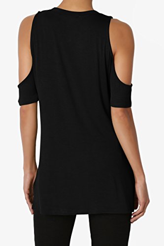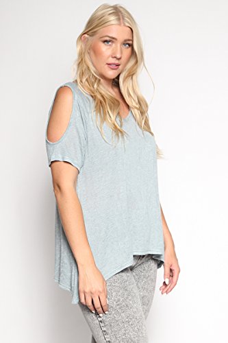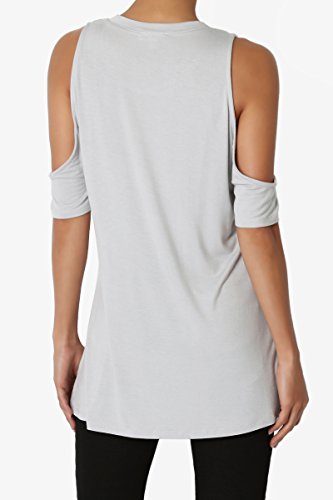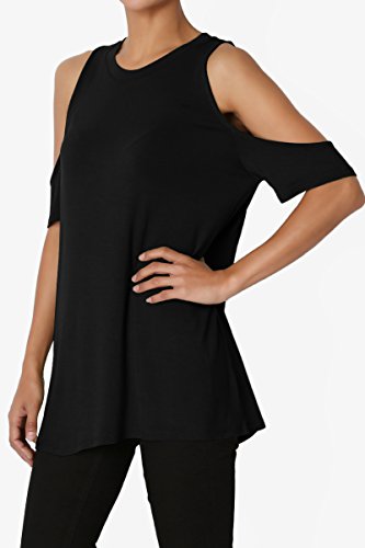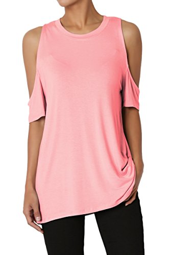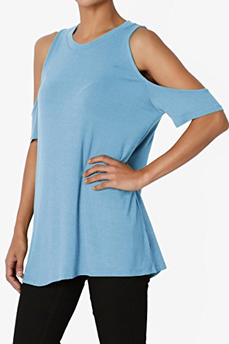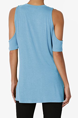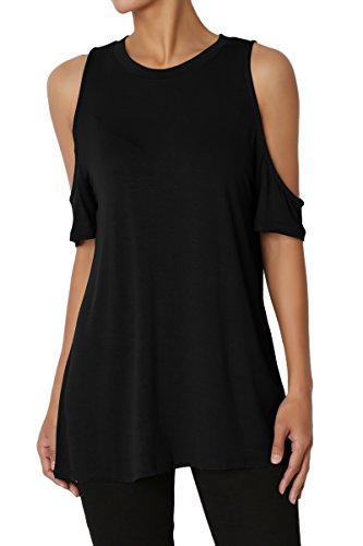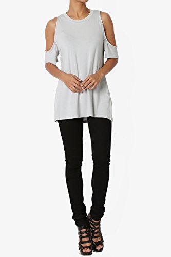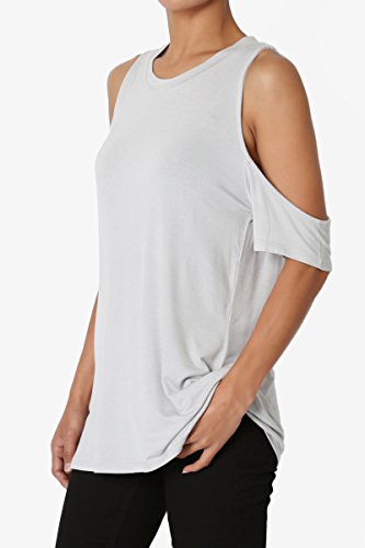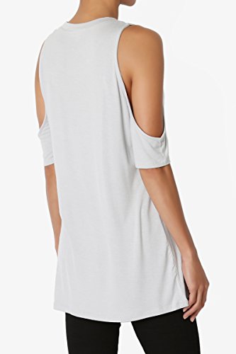 | TheMogan Women's Cold Shoulder Solid Top Hi Low Hem Simple Sexy Tee T-Shirts |